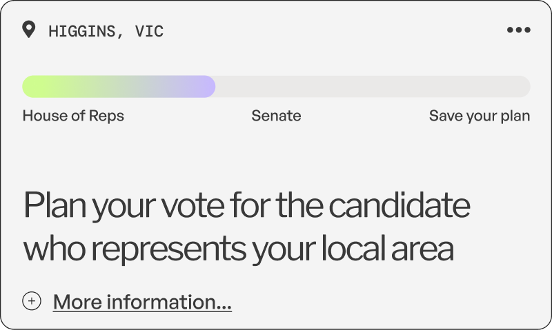 You can view your match level with candidates in your electorate, see how they’re approaching key issues and add your own notes based on any other issues that matter to you. You can then drag candidates into your ‘voting plan’ — putting them in the order of your preference. Importantly, this doesn’t have to reflect your ‘match levels’ — you get to decide your own preferences!