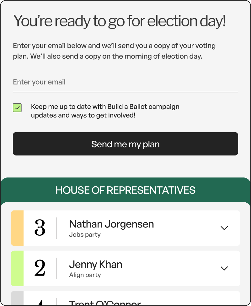We’re bringing Build a Ballot down south, launching a couple of weeks before election day. Sign up and we’ll let you know as soon as the tool is live!